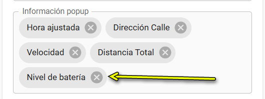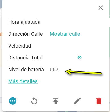 Una vez hecho eso, cuando señalemos el dispositivo en el mapa y se abra el popup, saldrá el tanto por ciento de batería que tiene el tracker la última vez que se conectó al servidor.